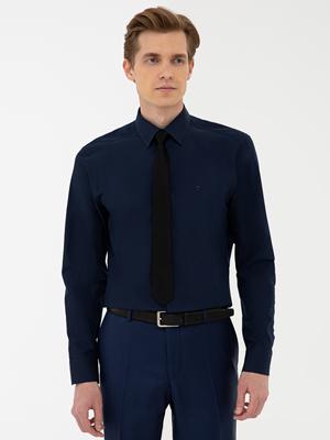 Lacivert Regular Fit Uzun Kollu Basic Gömlek