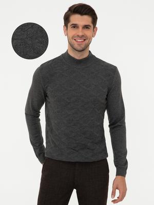 - Gri Melanj Slim Fit Yarım Balıkçı Yaka Triko Kazak