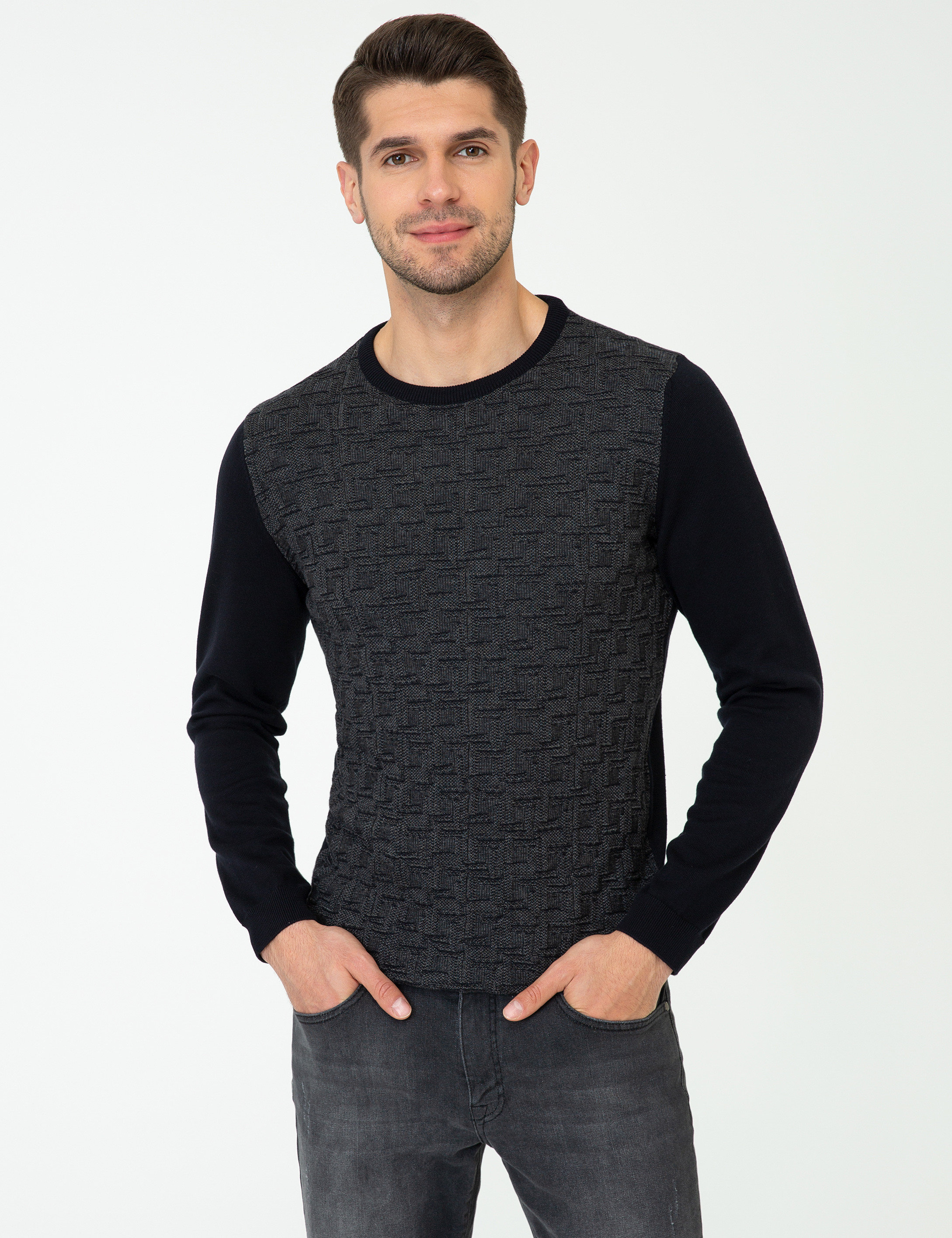 - Lacivert Slim Fit Bisiklet Yaka Triko Kazak