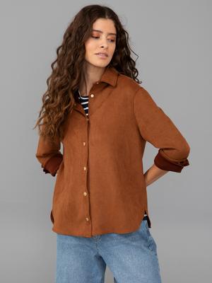 - Taba Comfort Fit Deri Gömlek