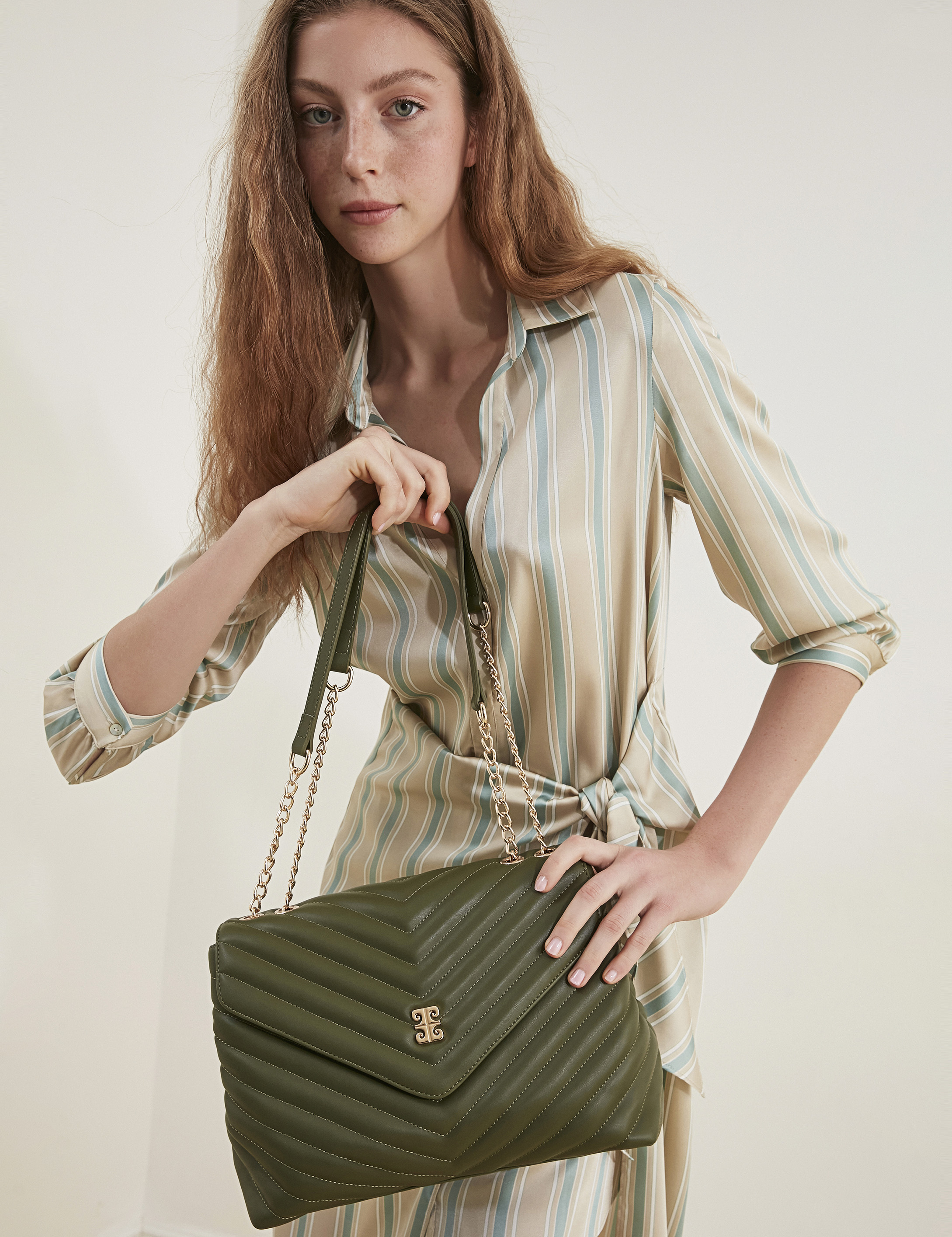 - Haki Zincir Askılı Omuz Çantası