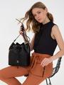 Ayarlanabilir uzun askı mevcuttur.Genişlik x Yükseklik x Derinlik: 25x27x14 cm'dir. Büzgülü kapama özelliğine sahiptir. Dışında 1 adet fermuarlı cep mevcuttur. 1 adet fermuarlı iç cep bulunmaktadır.Telefon vb. eşyaları koymak için 1 adet fermuarsız iç cep bulunmaktadır. Suni deri malzemeden üretilmiştir. 2 yıl garantilidir. Türkiye'de üretilmiştir.