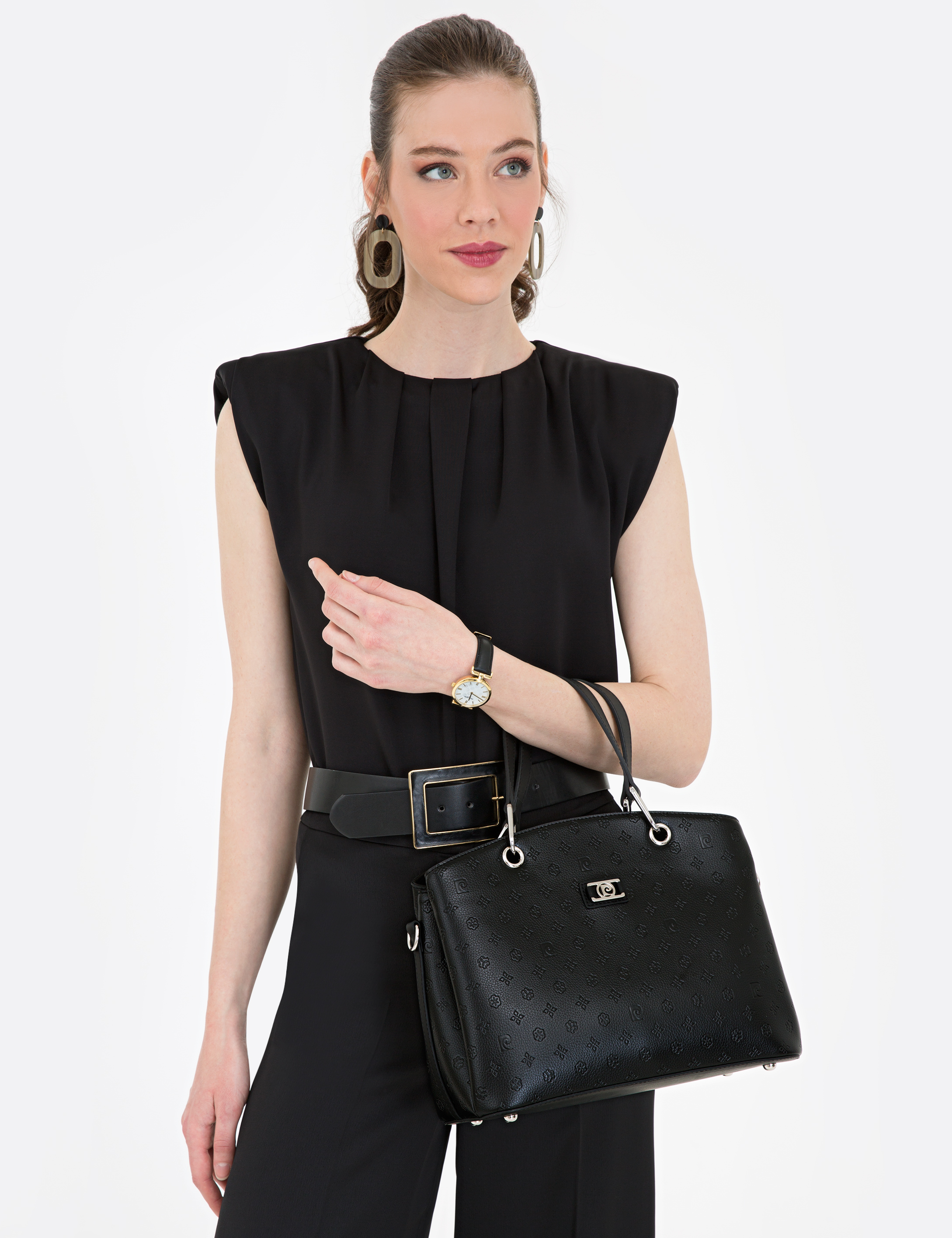 Ayarlanabilir ve çıkarılabilir uzun askı mevcuttur. Genişlik x Yükseklik x Derinlik: 30x21x14 cm'dir. Fermuarlı kapama özelliğine sahiptir. Arka yüzünde 1 adet fermuarlı göz bulunmaktadır. İçi üç bölmelidir. Orta bölümünde 1 adet fermuarlı iç cep ile telefon vb. eşyaları koymak için de 1 adet fermuarsız iç cep bulunmaktadır. Suni deri malzemeden üretilmiştir. 2 yıl garantilidir. Türkiye'de üretilmiştir.