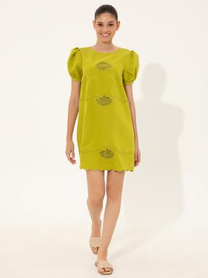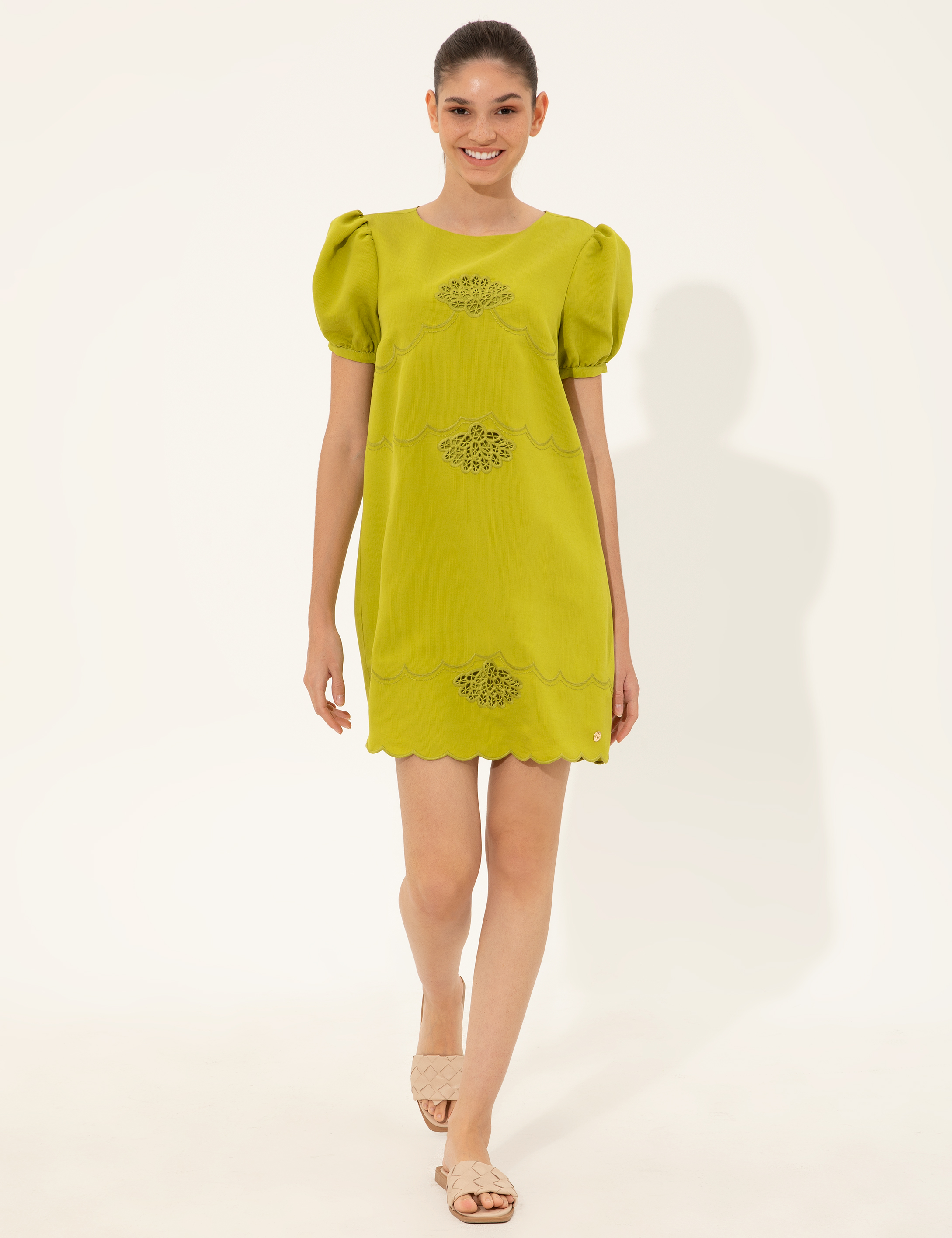Fıstık Yeşili Comfort Fit Dokuma Elbise