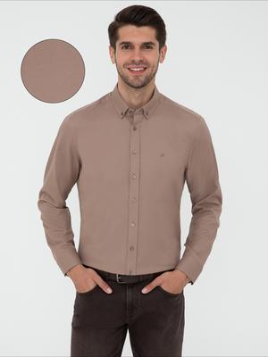 Açık Kahverengi Slim Fit Uzun Kollu Gömlek