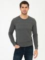 - Gri Melanj Slim Fit Bisiklet Yaka Triko Kazak