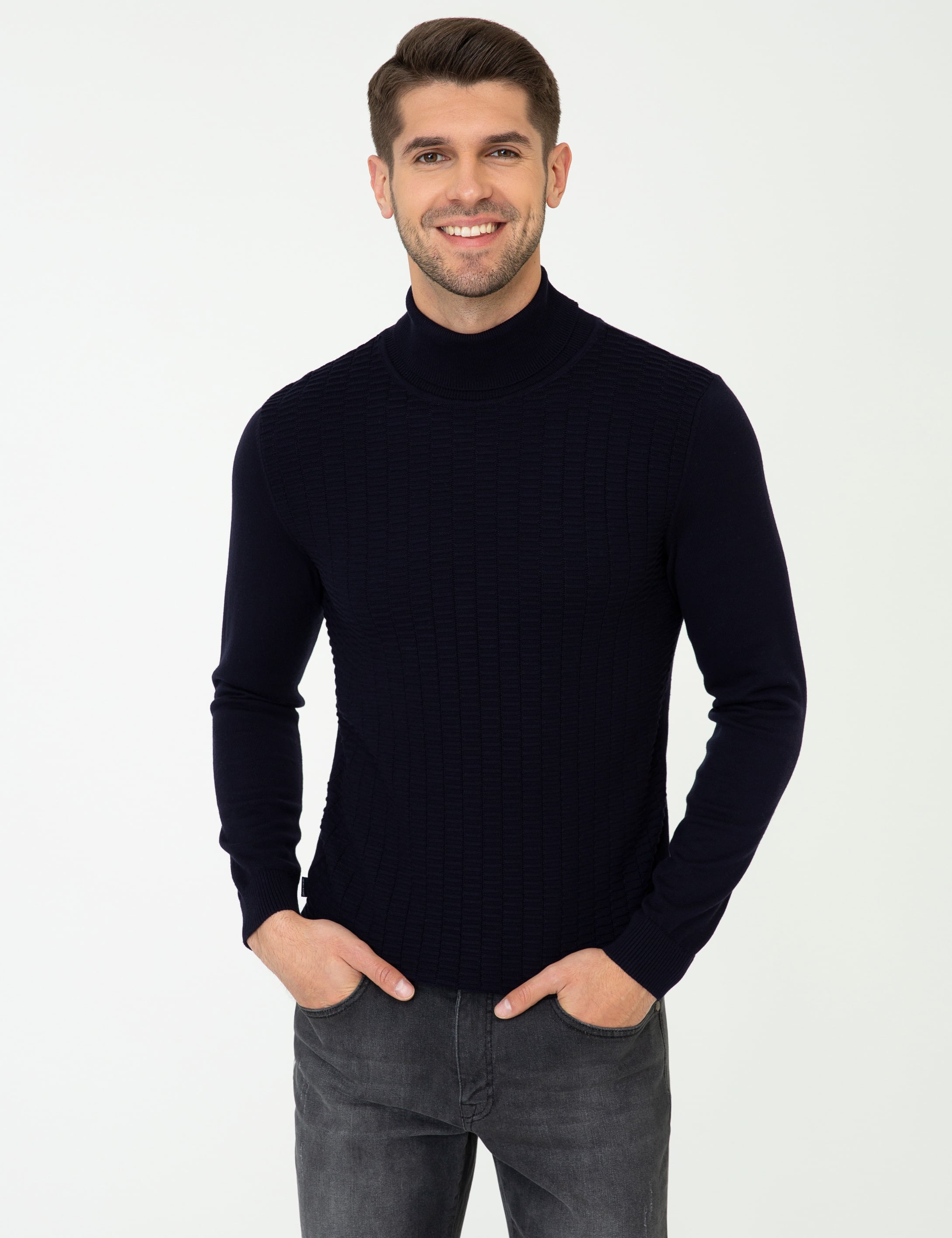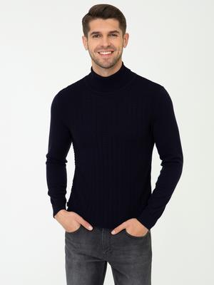 Lacivert Slim Fit Balıkçı Yaka Triko Kazak