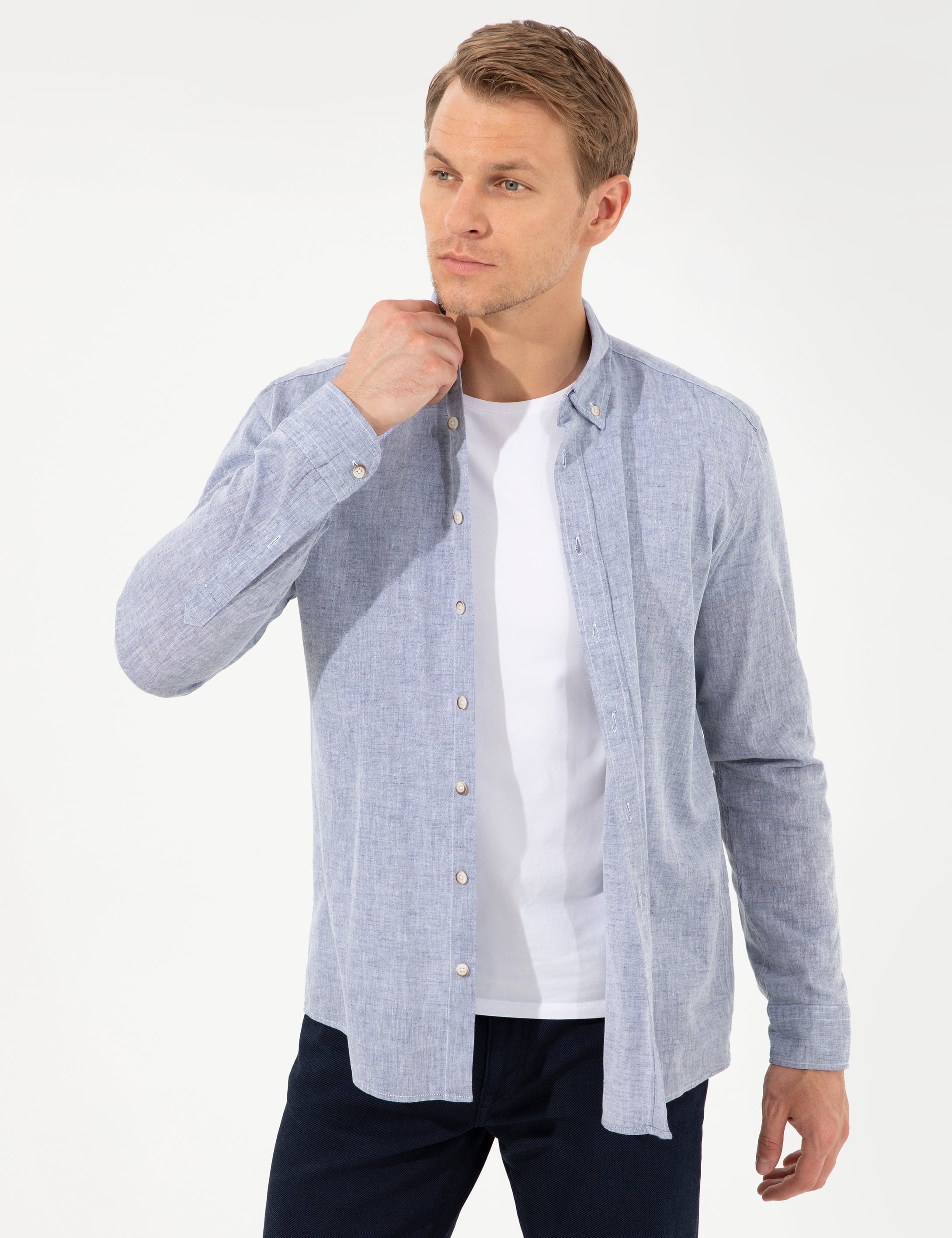 Lacivert Regular Fit Uzun Kollu Gömlek