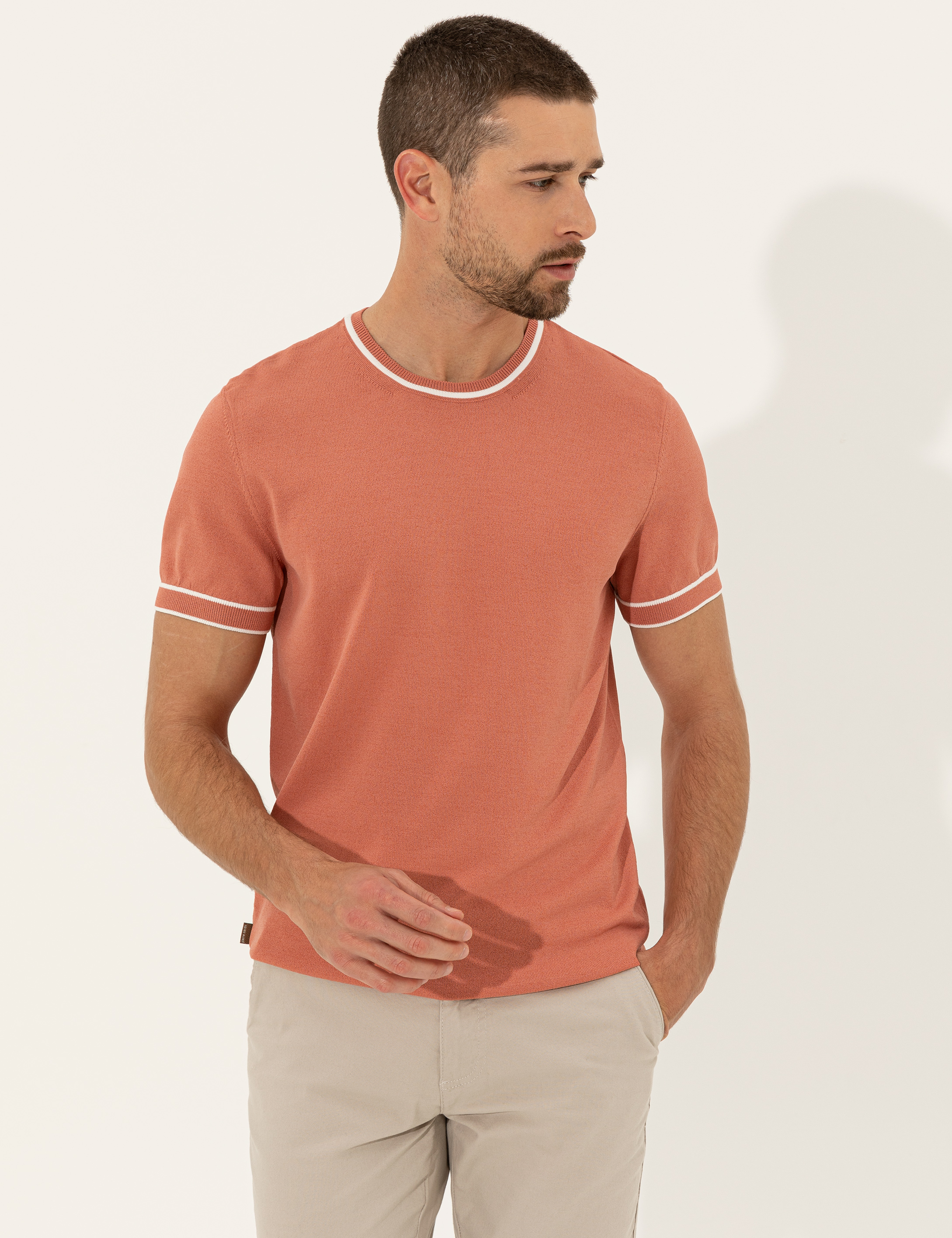 Pembe Slim Fit Bisiklet Yaka Triko Tişört