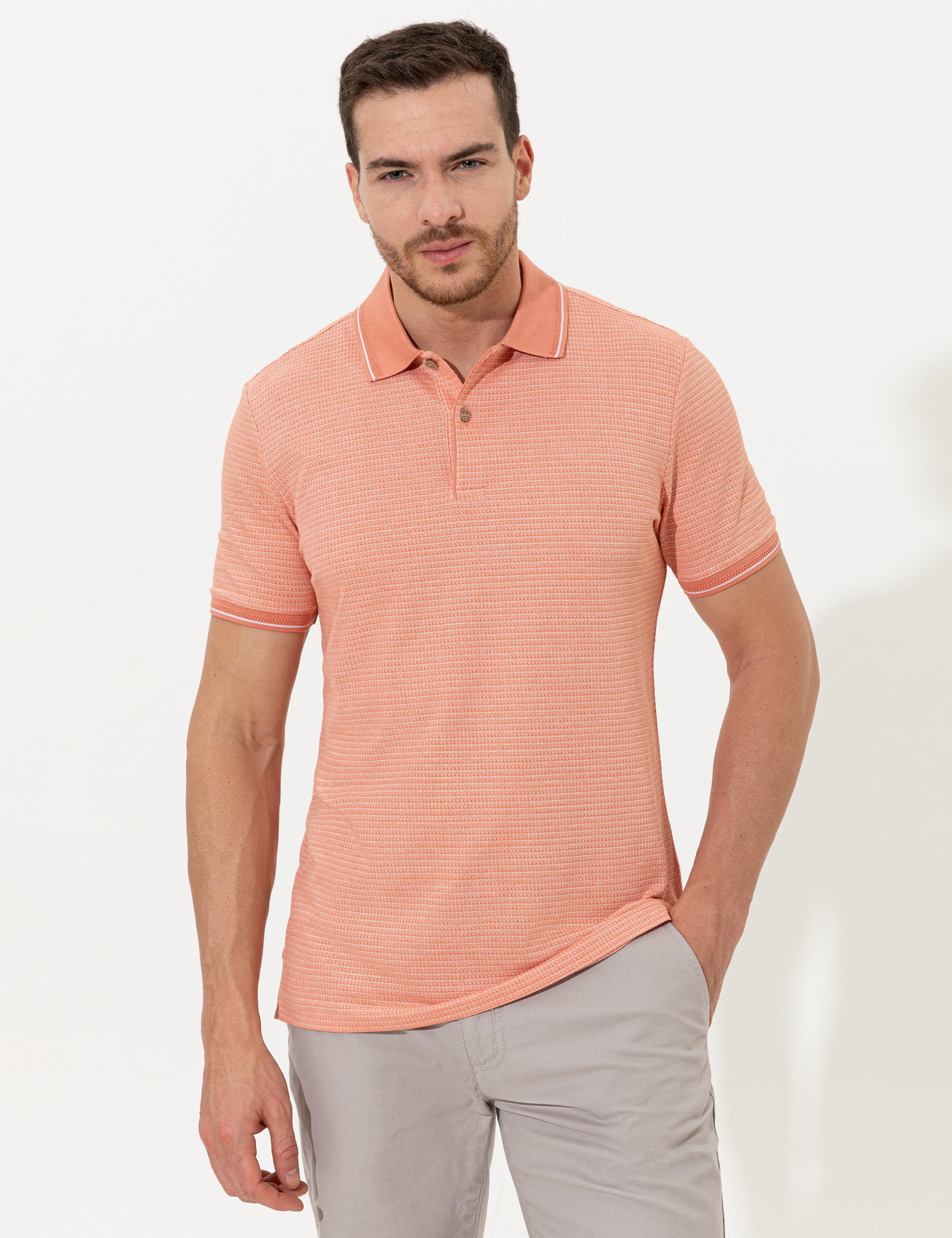 Coral Dokulu Slim Fit Polo Yaka Tişört