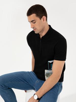 - Siyah Slim Fit Fermuar Detaylı Polo Yaka Tişört