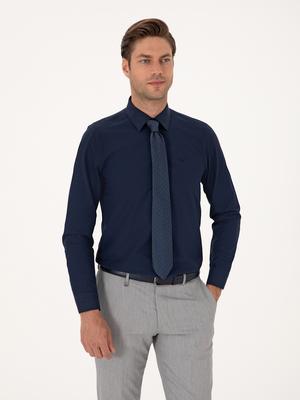 - Lacivert Slim Fit Uzun Kollu Basic Gömlek