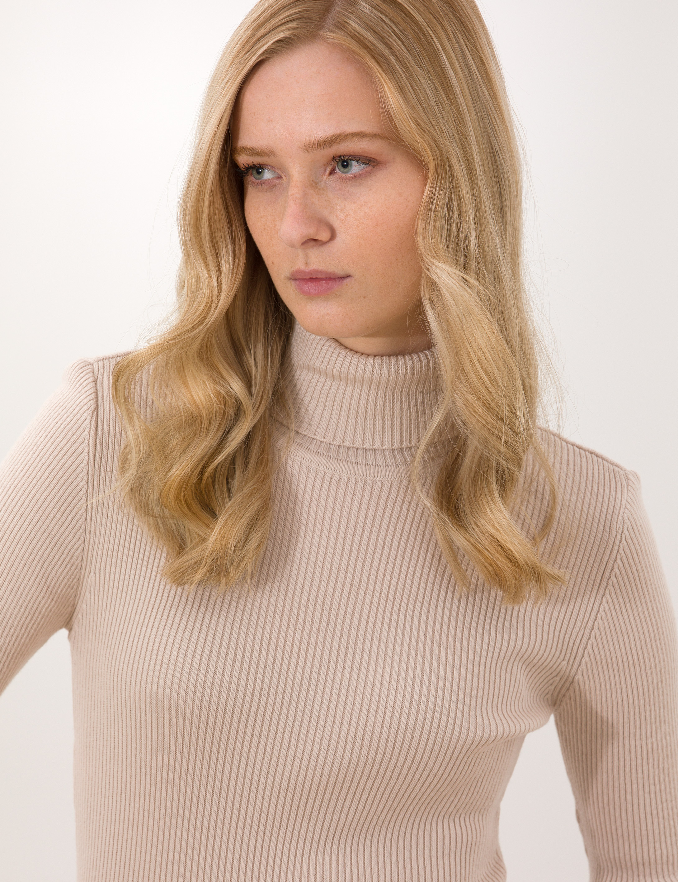 - Krem Melanj Slim Fit Basic Balıkçı Yaka Kazak