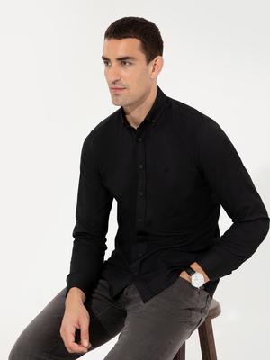 Siyah Slim Fit Oxford Gömlek