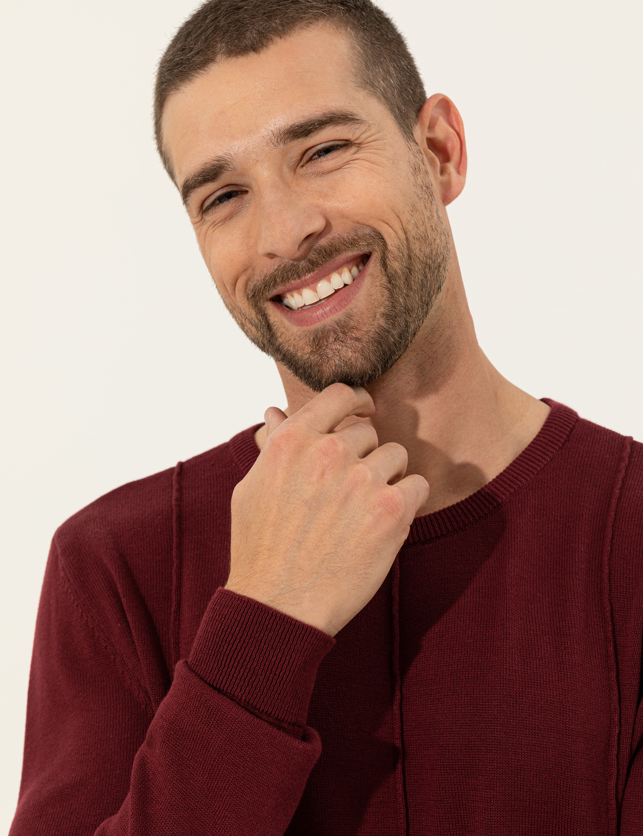 Bordo Slim Fit Bisiklet Yaka Triko Kazak
