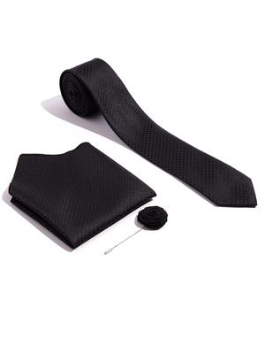 Siyah 3'lü Kravat Mendil Set