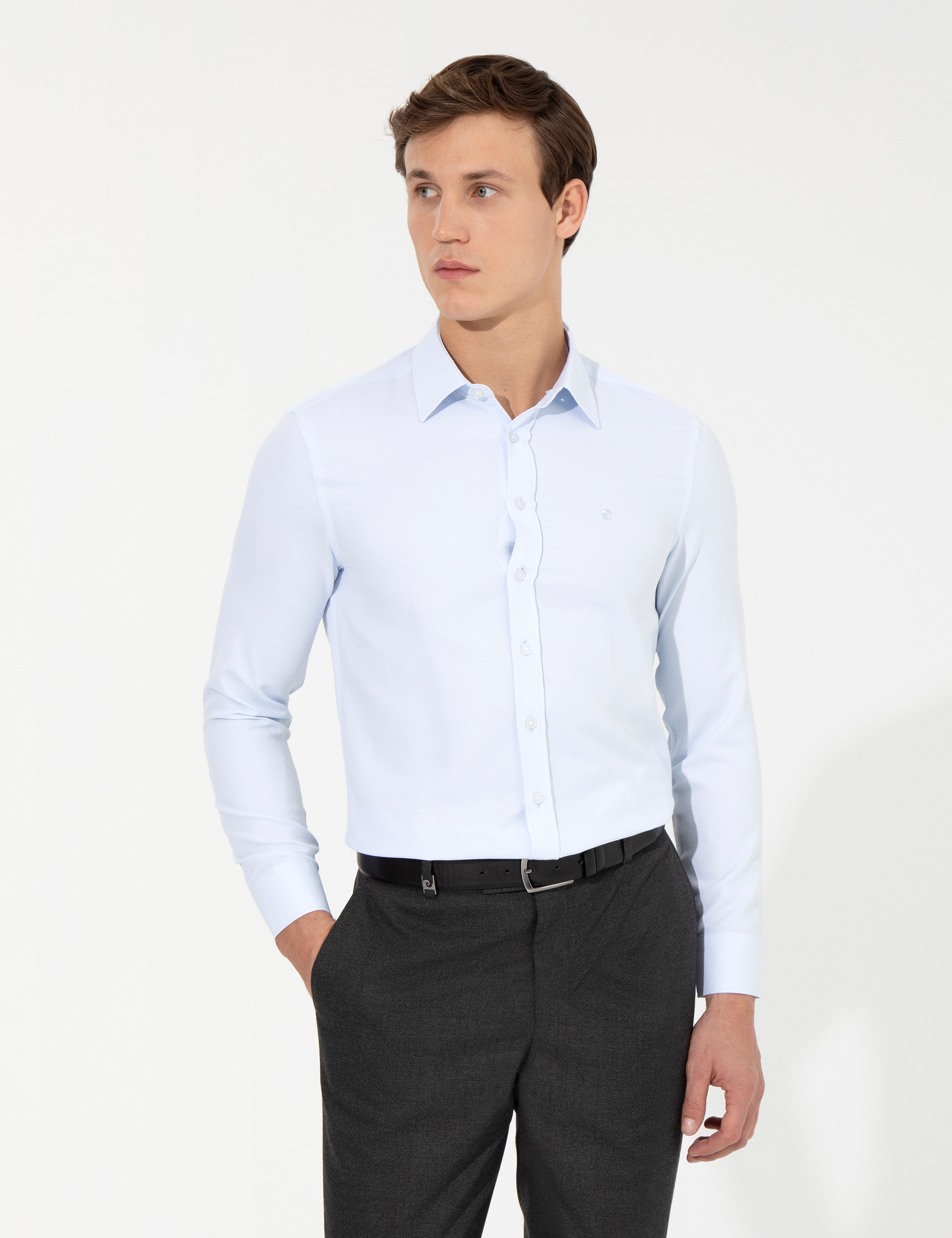 Açık Mavi Slim Fit Armürlü Uzun Kollu Gömlek