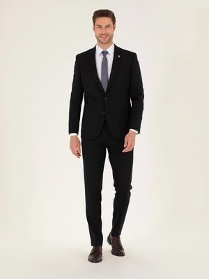 Siyah Ekstra Slim Fit Yün Takım Elbise