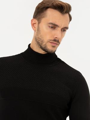 Siyah Slim Fit Balıkçı Yaka Triko Kazak