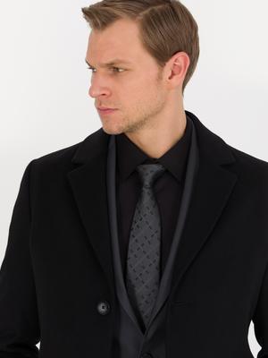Siyah Ex. Slim Fit Kaşe Kaban