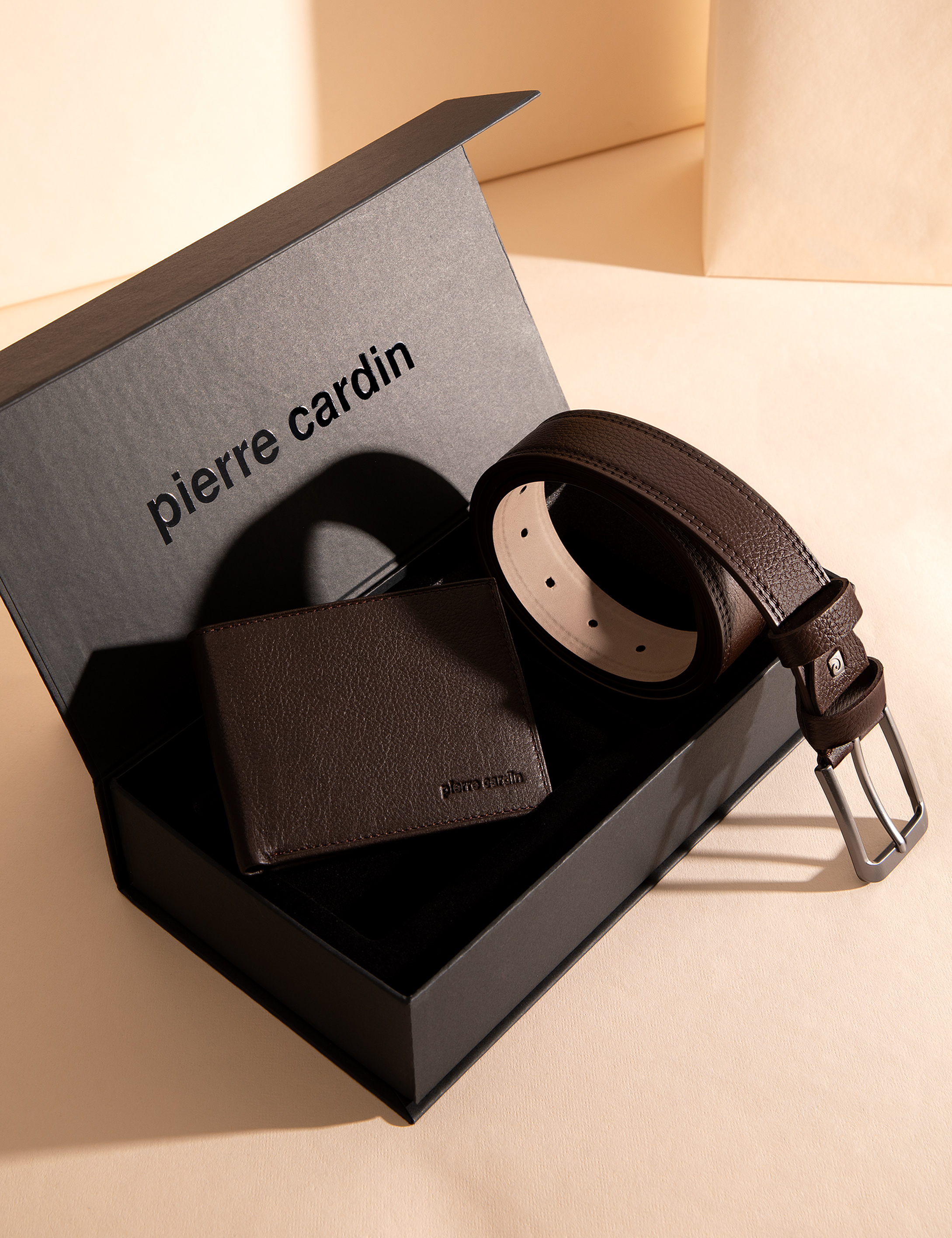 Klasik giyime uygun tasarlanmış kemeri, yumuşak doku cüzdan ile birleştirerek Pierre Cardin set kutularını hazırladık. Şık kutulu set içinde gönderimi ile hediye alımlarınızın vazgeçilmezi olacaktır.