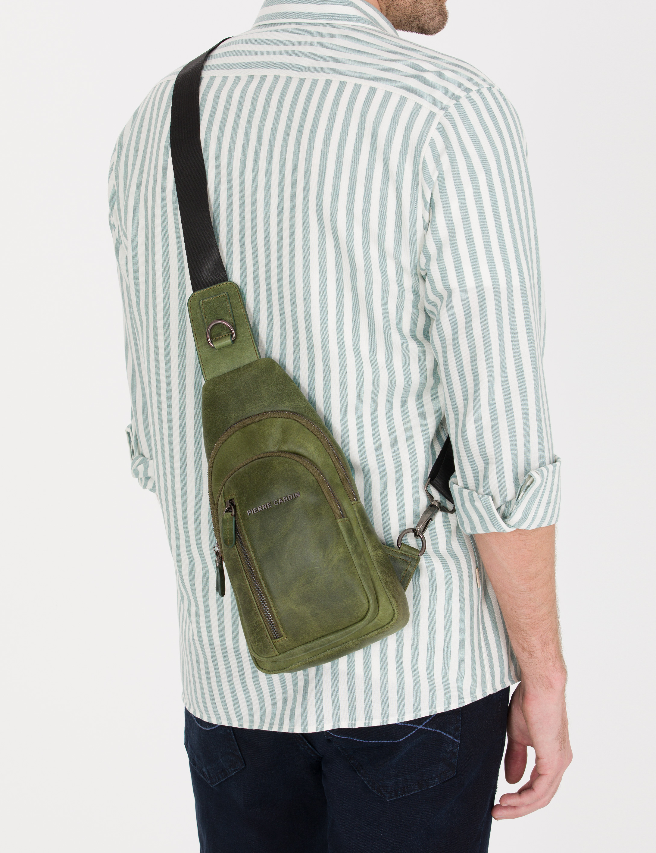 Erkek Haki Deri Sırt Çantası