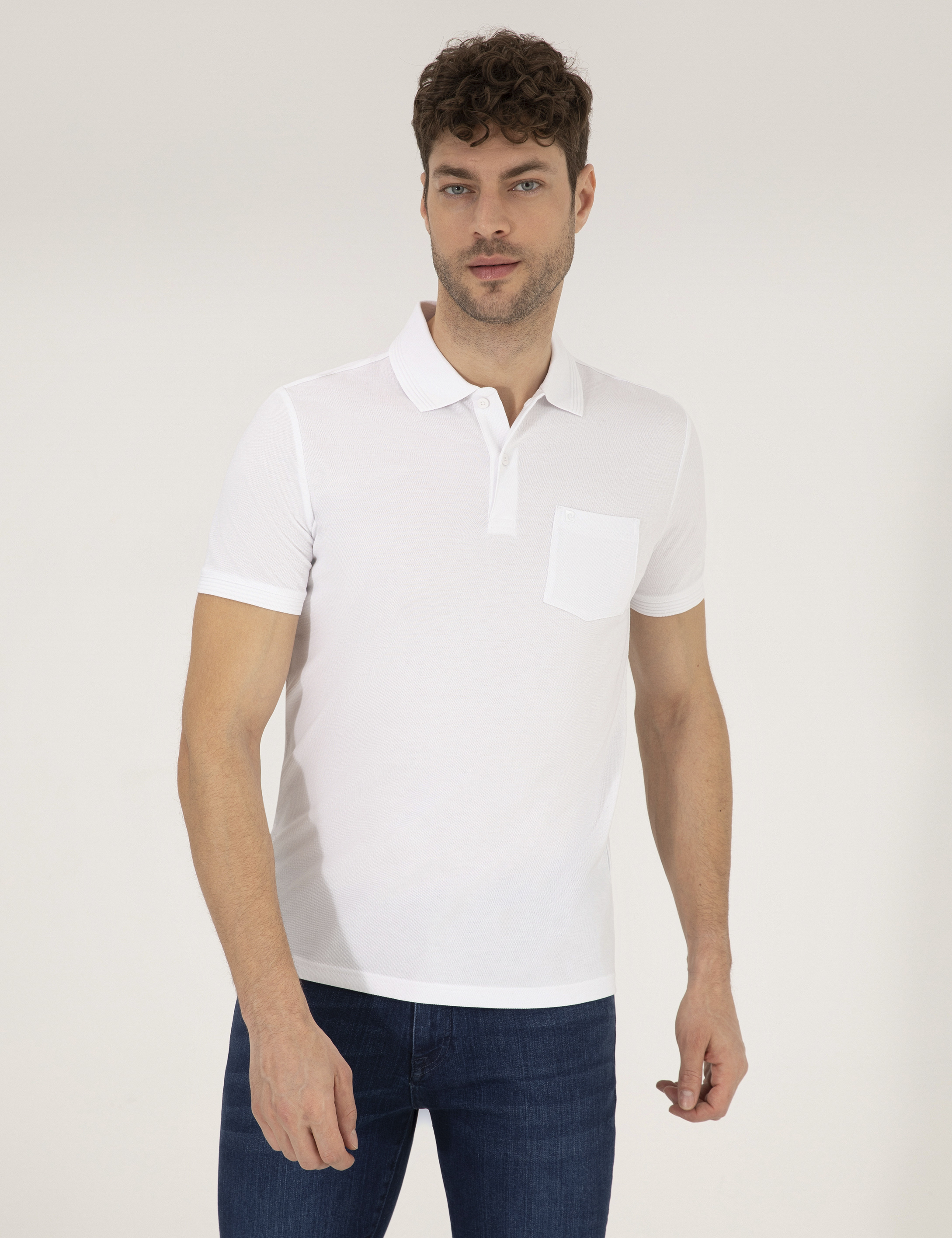 Beyaz Regular Fit Polo Yaka Basic Tişört