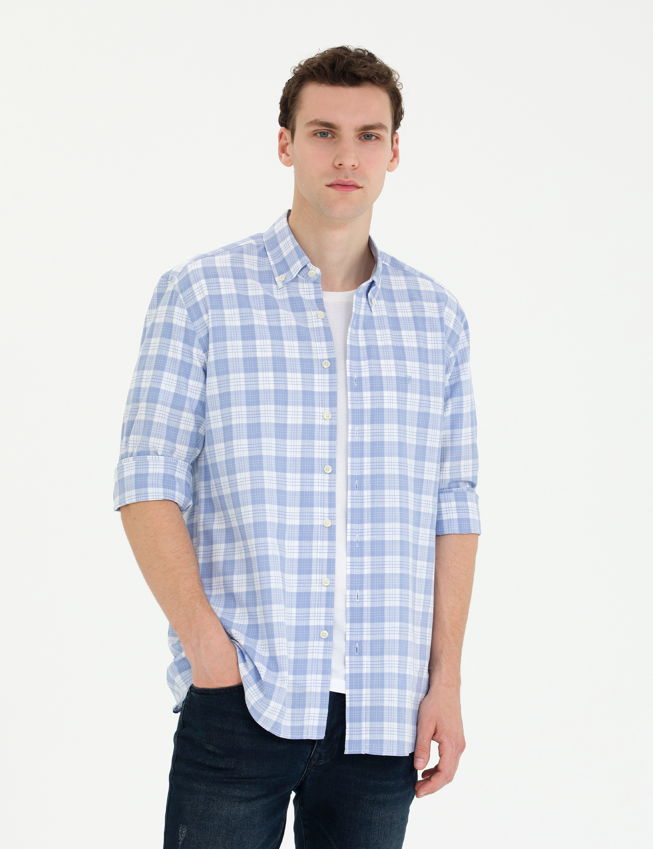 - Mavi Regular Fit Ekose Desenli Gömlek