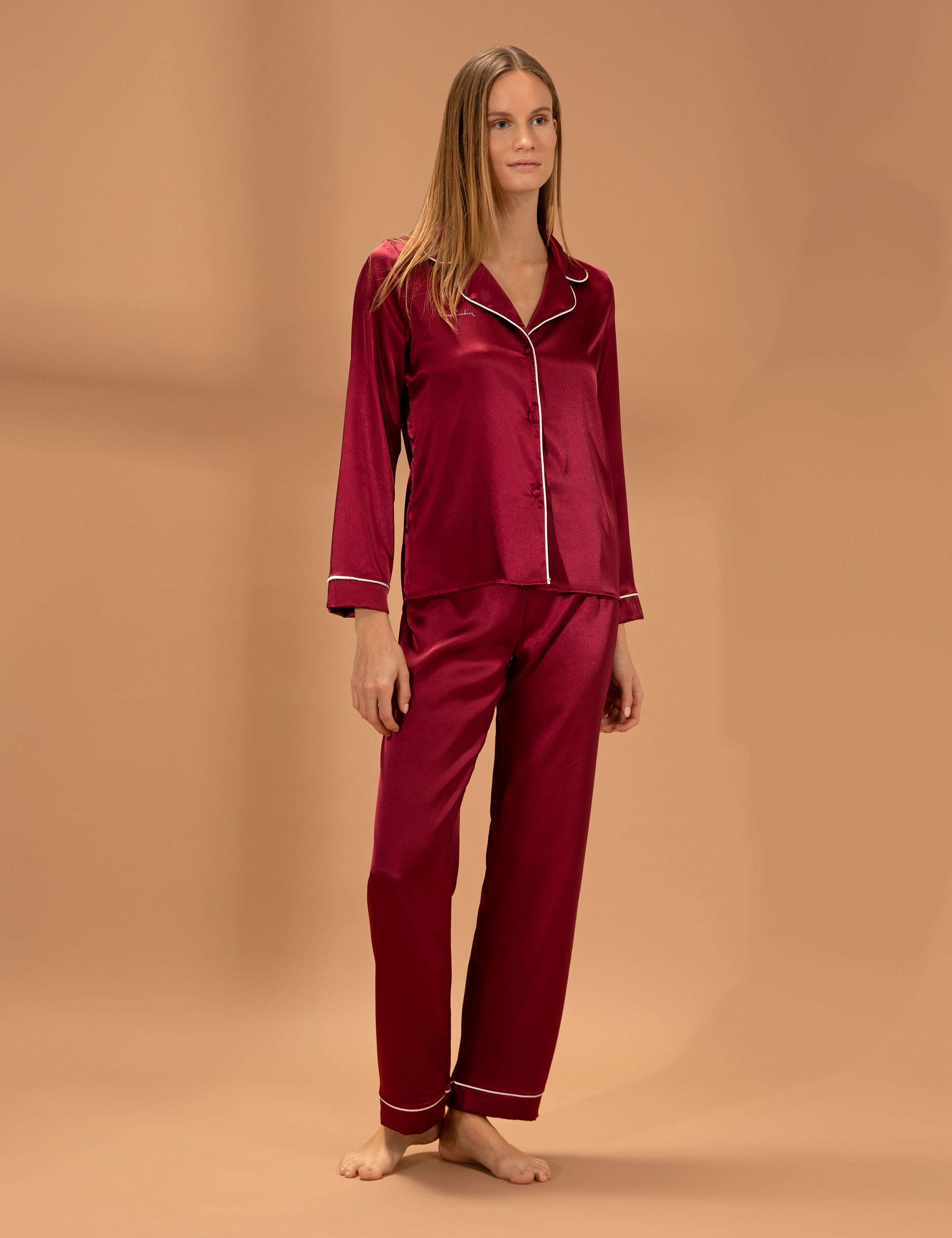 Saten biyeli pijama takımı, 2 parçadan oluşmaktadır. Orijinal kutu içerisinde, birlikte paketlenmiştir.