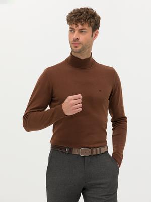 Kahverengi Slim Fit Balıkçı Yaka Basic Triko Kazak