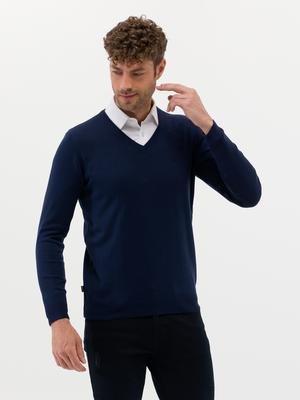 Açık Lacivert Slim Fit V Yaka Basic Triko Kazak