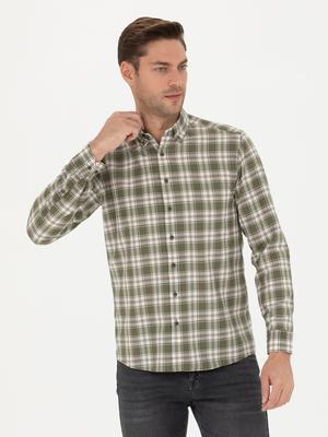 Slim fit kesim, vücudu nazikçe sararak rahat bir kullanım sunmaktadır. Uzun kollu yapısı, gömleğin dört mevsim boyunca tercih edilmesini sağlamakta ve serin günlerde ekstra koruma sunmaktadır. Düğme kapamalı yaka detayı, tasarımı hem klasik hem de modern çizgilerle buluşturarak gömleği çok yönlü bir parça haline getirmektedir. Haki rengin ekose desenle birleşmesi, hem gündelik hem de yarı resmi kombinlere dinamik bir dokunuş katmaktadır.