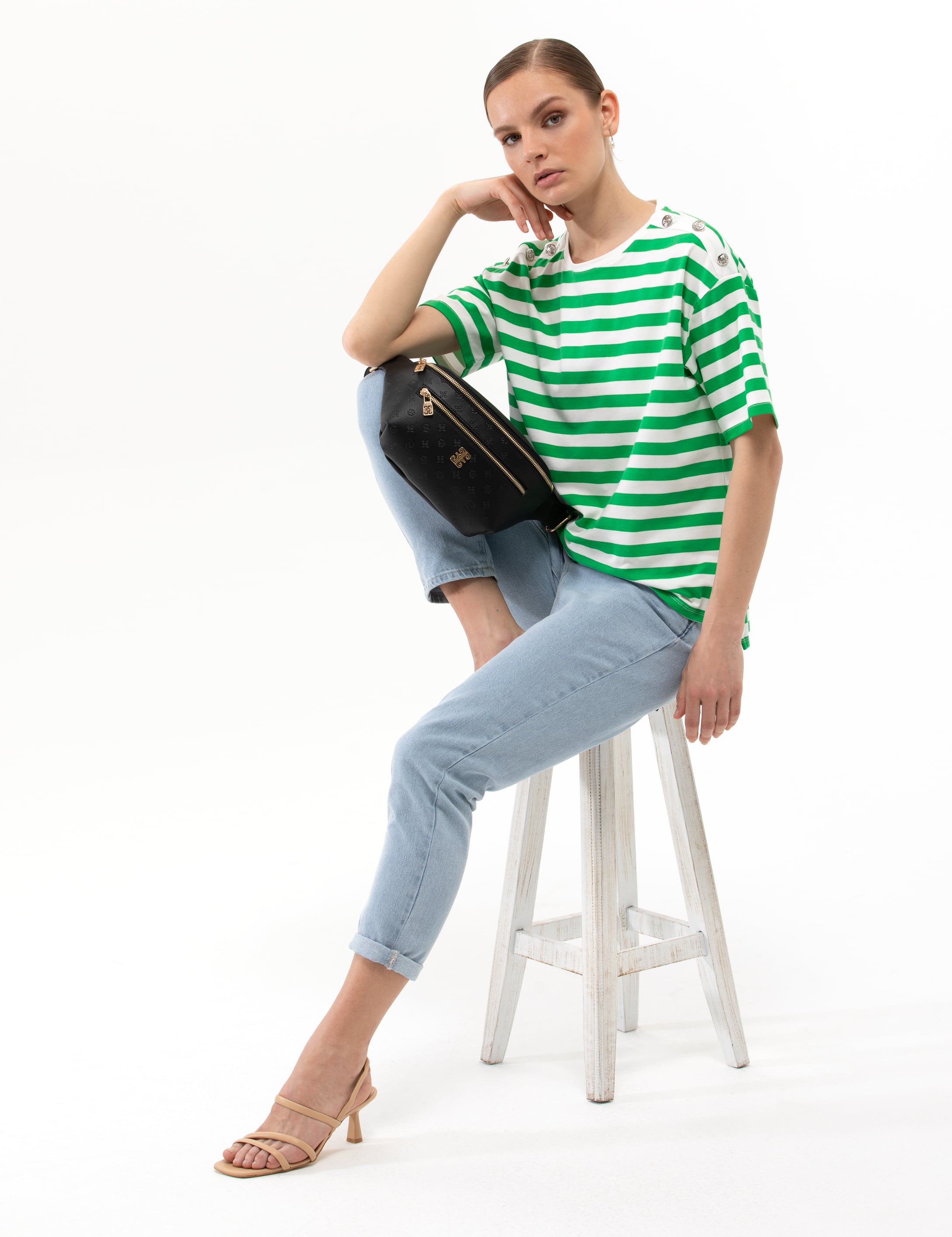Genişlik x Yükseklik x Derinlik: 28x16x6 cm'dir. Genişlik x Yükseklik x Derinlik: 28x16x6 cm'dir. Bel çantasıdır. Omuzda ve sırtta kullanılabilmektedir. Fermuarlı çift kapama özelliğine sahiptir. Telefon vb. eşyaları koymak için 1 adet fermuarsız göz bulunmaktadır. Suni deri malzemeden üretilmiştir.