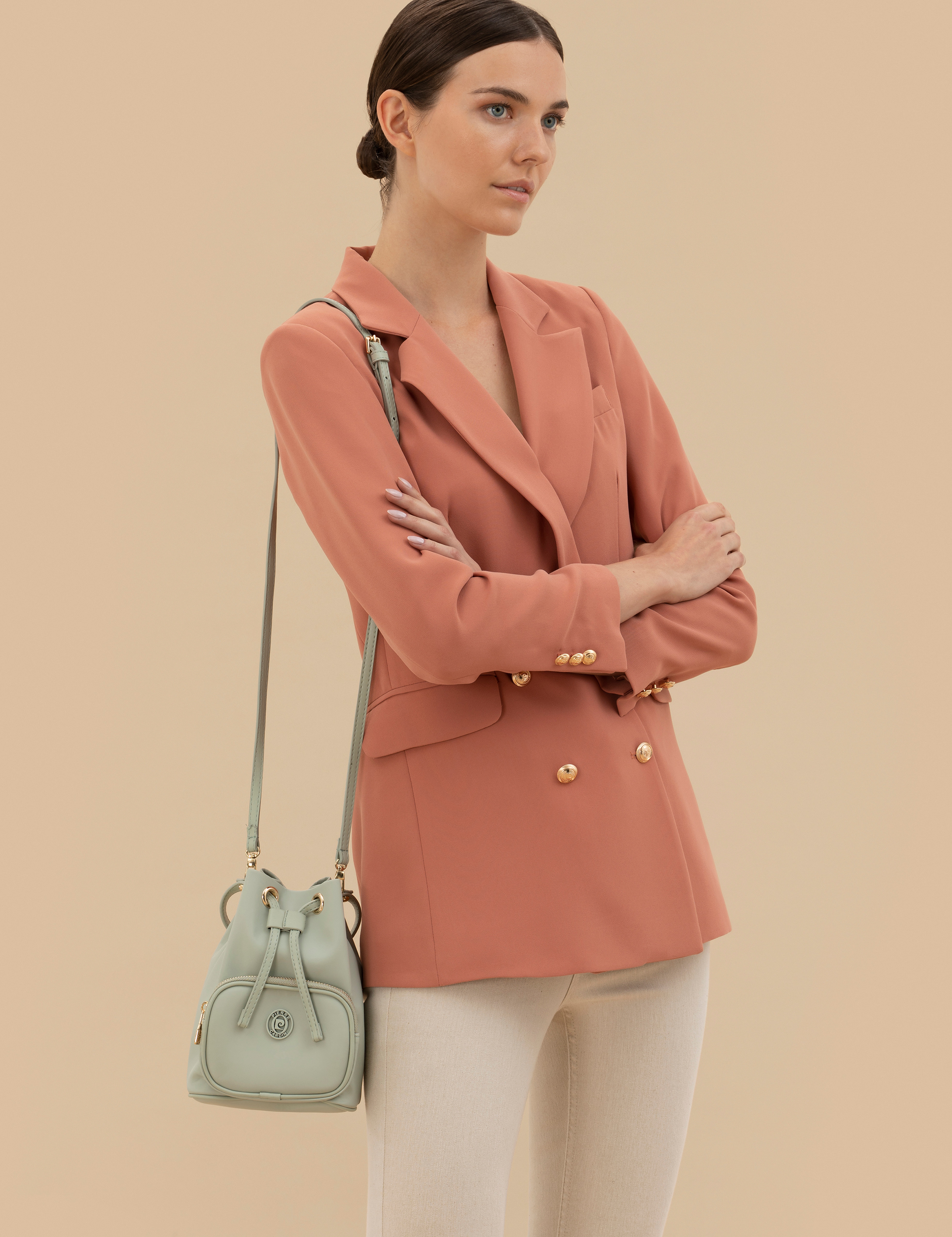Çıkarılabilir omuz askı mevcuttur.; Genişlik x Yükseklik x Derinlik: 15x22x10 cm'dir.;Büzgülü kapama özelliğine sahiptir.; Ön kısmında fermuar kapamalı cep bulunmaktadır.; Saten kumaştan üretilmiştir.; Pierre Cardin yazılı özel saklama kılıfı çanta içerisinde mevcuttur.; 2 yıl garantilidir.; Türkiye'de üretilmiştir.
