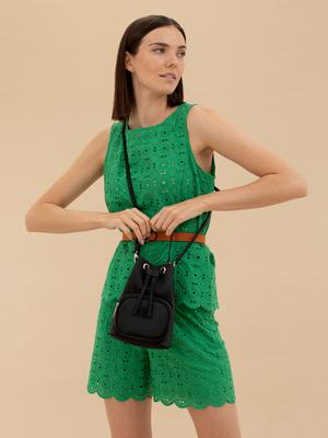 Çıkarılabilir omuz askı mevcuttur.; Genişlik x Yükseklik x Derinlik: 15x22x10 cm'dir.;Büzgülü kapama özelliğine sahiptir.; Ön kısmında fermuar kapamalı cep bulunmaktadır.; Saten kumaştan üretilmiştir.; Pierre Cardin yazılı özel saklama kılıfı çanta içerisinde mevcuttur.; 2 yıl garantilidir.; Türkiye'de üretilmiştir.