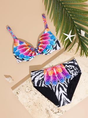 Çok renkli, çiçek desenli kadın bikini takımımız yazın enerjisi ve canlılığını doğrudan stilinize yansıtıyor. Kadın bikini taş detaylı özelliği ile süslenmiştir ve toparlayıcı özelliği sayesinde göğüs bölgenizi kusursuzca sarar. Yüksek bel bikini altı, karın bölgenizi sıkıca sararak belinizi daha ince gösterir ve vücudunuzu zarif bir şekilde kavrar. Desenli ve renkli tasarımı ile plajda ve havuz başında göz alıcı bir görünüm elde edeceksiniz. Bu bikinimiz konforu ve şıklığı bir araya getiriyor.