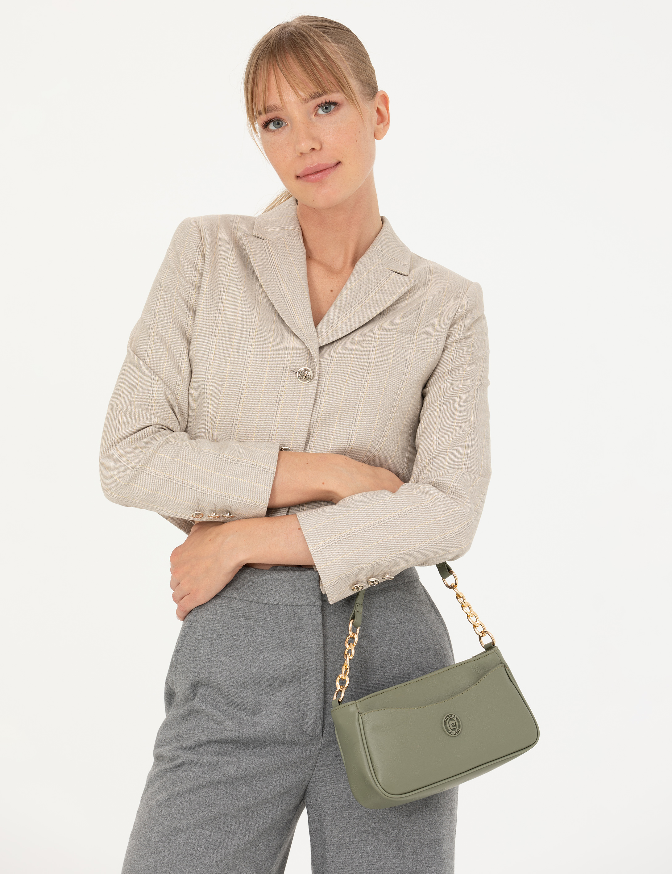 Zincir detaylı omuz askısı mevcuttur.; Genişlik x Yükseklik x Derinlik: 23x13x6 cm'dir.; Fermuarlı kapama özelliğine sahiptir.; Ön kısmında fermuarsız bölüm bulunmaktadır.; İçerisinde 1 adet fermuarlı iç cep bulunmaktadır.; Telefon vb. eşyaları koymak için 1 adet fermuarsız iç cep bulunmaktadır.; Suni deri malzemeden üretilmiştir.; Pierre Cardin yazılı özel saklama kılıfı çanta içerisinde mevcuttur.; 2 yıl garantilidir.; Türkiye'de üretilmiştir.
