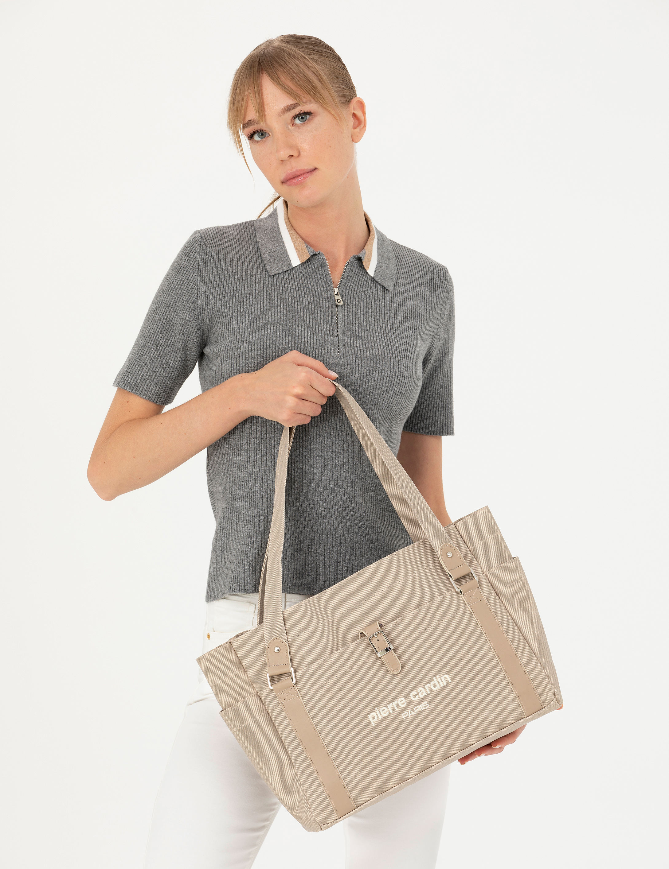 - Bej Kanvas Kol Çantası