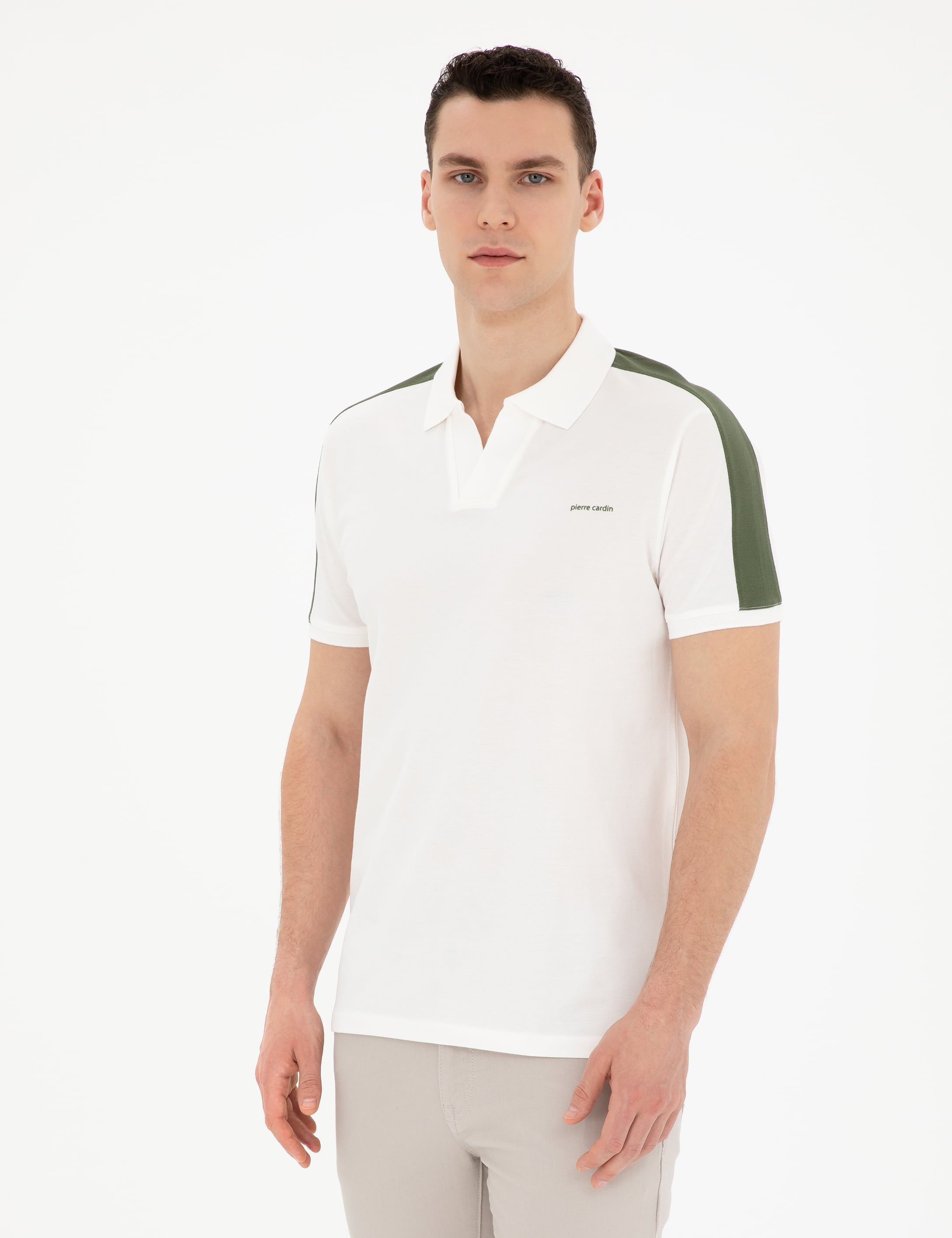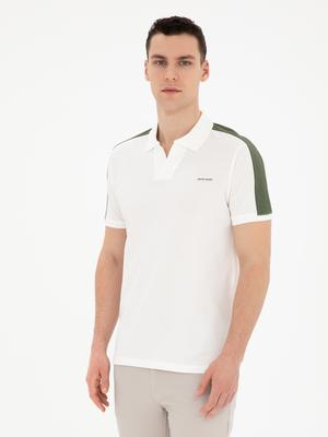 Haki ve beyazın uyumunu bir araya getiren bu tişört, şıklığı ve konforu aynı anda sunmaktadır. Omuzlardaki haki detaylar, sade tasarıma zarif bir dokunuş katmakta ve göz alıcı bir stil yaratmaktadır. Kısa kollu kesimi, sıcak günlerde serin kalmanıza yardımcı olurken, hafif kumaşı sayesinde gün boyu rahatlık sağlamaktadır.