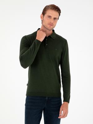 - Koyu Yeşil Slim Fit Polo Yaka Basic Triko Kazak