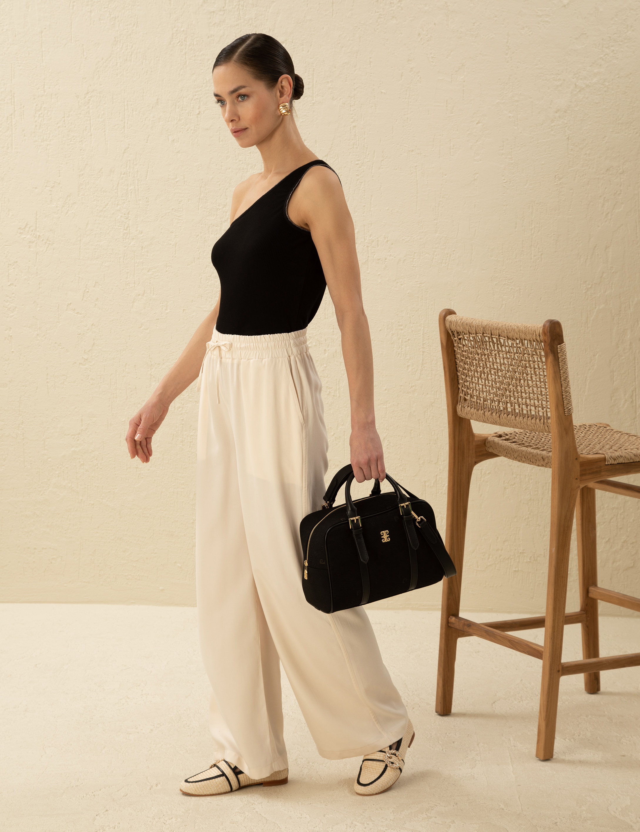 Çıkarıllabilir omuz askı mevcuttur.; Genişlik x Yükseklik x Derinlik: 31x21x14 cm'dir.; Fermuarlı kapama özelliğine sahiptir.; İçerisinde 1 adet fermuarlı iç cep bulunmaktadır.; Telefon vb. eşyaları koymak için 1 adet fermuarsız iç cep bulunmaktadır.; Kanvas malzemeden üretilmiştir.; Pierre Cardin yazılı özel saklama kılıfı çanta içerisinde mevcuttur.; 2 yıl garantilidir.; Türkiye'de üretilmiştir.