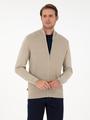 - Gri Melanj Slim Fit Fermuarlı Triko Hırka