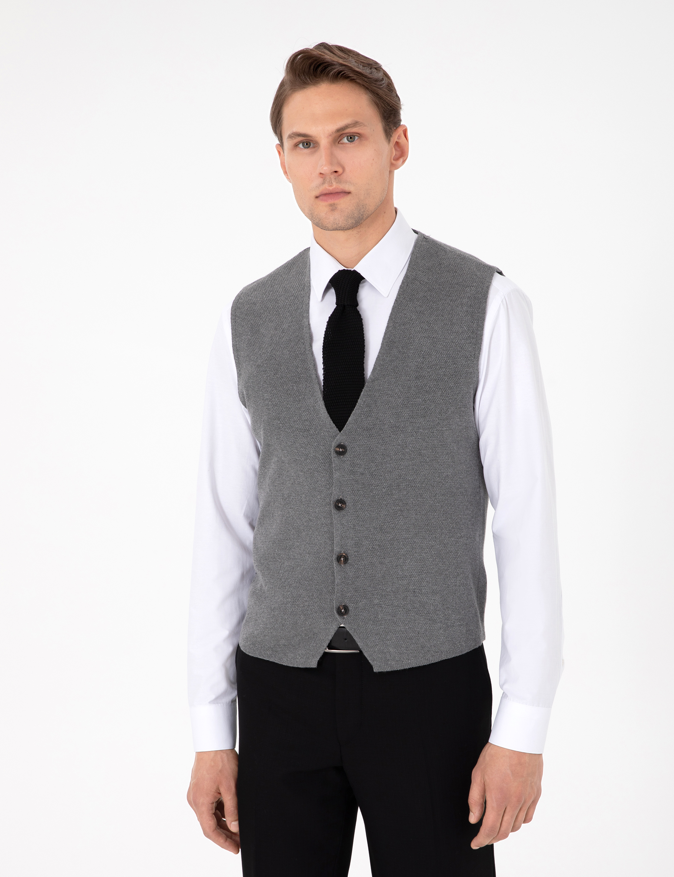 Gri Melanj Triko Yelek