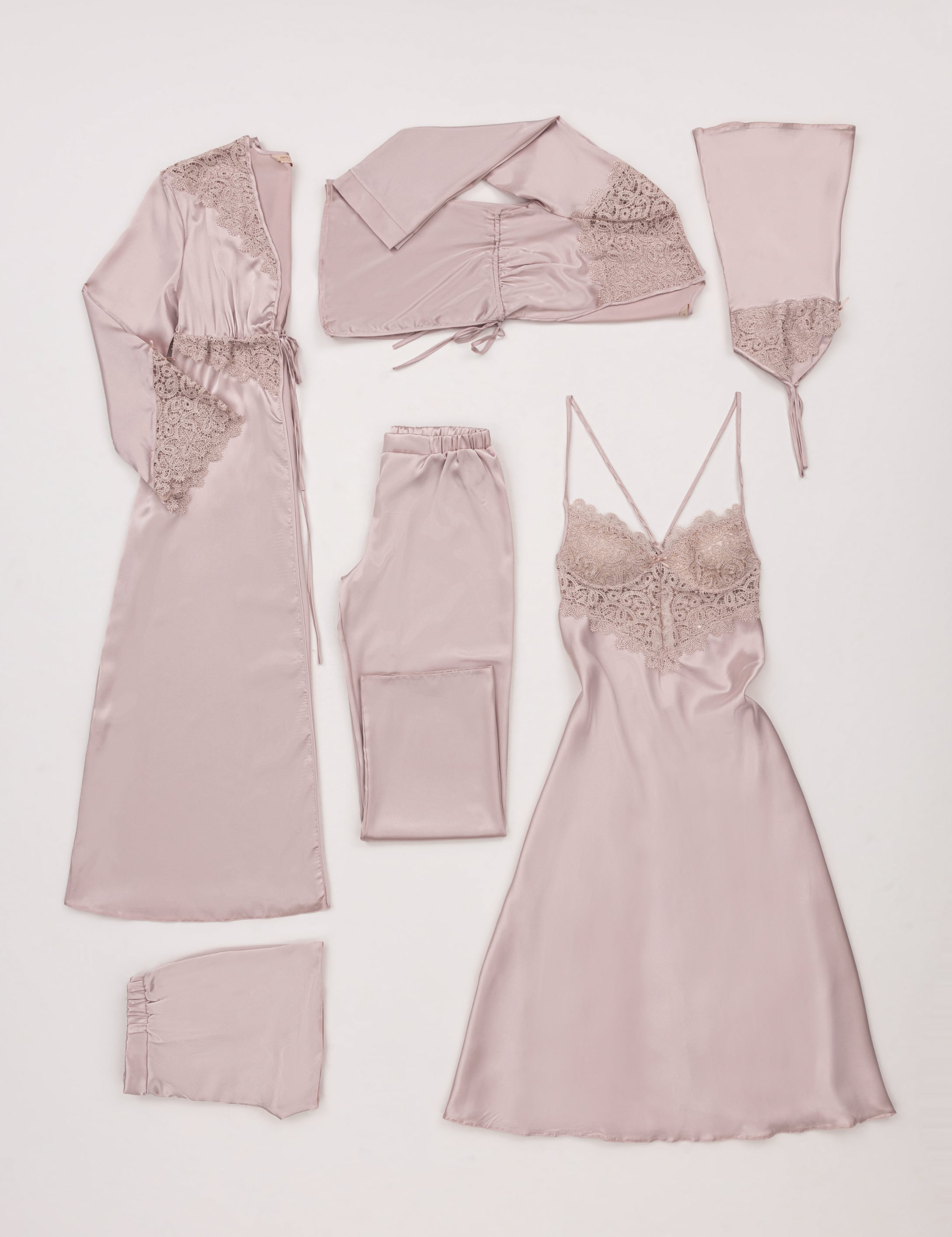 - Pudra Saten 6'lı Çeyiz Seti