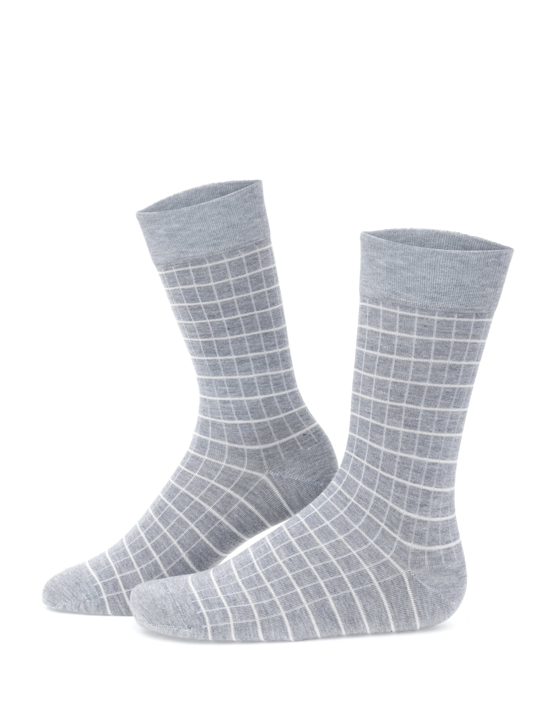 Erkek Bambu Karışımlı Gri Soket Desenli Çorap