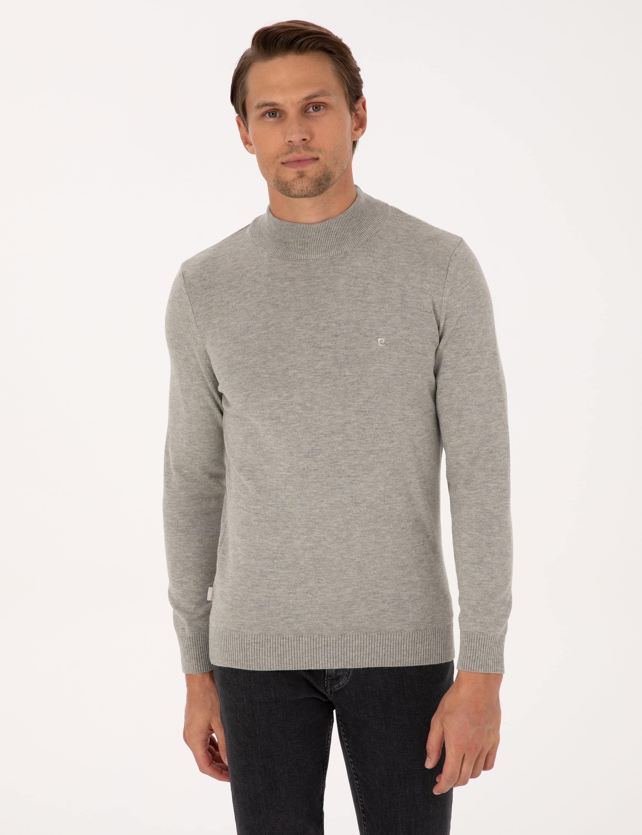 Açık Gri Melanj Slim Fit Yarım Balıkçı Yaka Basic Triko Kazak