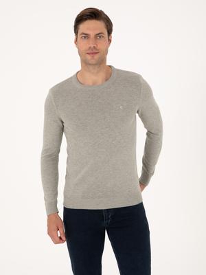 Açık Gri Melanj Slim Fit Bisiklet Yaka Basic Triko Kazak