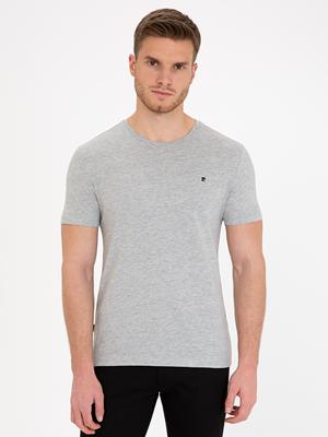 - Açık Gri Melanj Slim Fit Bisiklet Yaka Basic Tişört