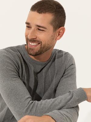 - Açık Gri Melanj Slim Fit Bisiklet Yaka Triko Kazak
