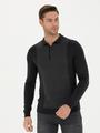 Açık Gri Melanj Slim Fit Düğmeli Polo Yaka Triko Kazak